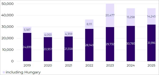На регионално ниво процедурите по несъстоятелност се увеличават само с 0,26% през 2025 г., като броят им нараства от 46 043 през 2024 г. до 46 161 през 2025 г. Инфлацията се забавя, лихвените проценти започнаха да спадат, енергийните пазари отбелязаха подобрение, а натискът върху заплатите отслабна, което доведе до частично облекчение за маржовете на предприятията. Тези подобрения обаче не водят до равномерно възстановяване за компаниите в целия регион.